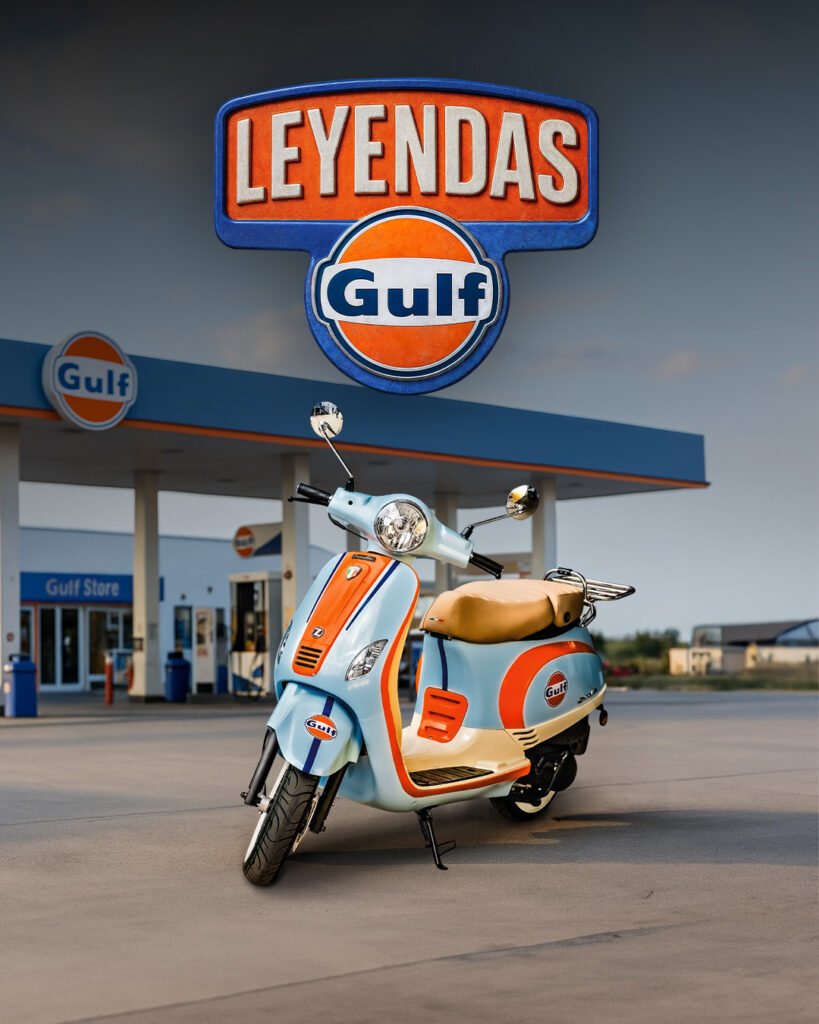 Es un scooter vintage modelo Exclusive LT, con motor monocilíndrico y velocidad máxima de 100km/h. Tiene una capacidad de carga de 5,5 lts.